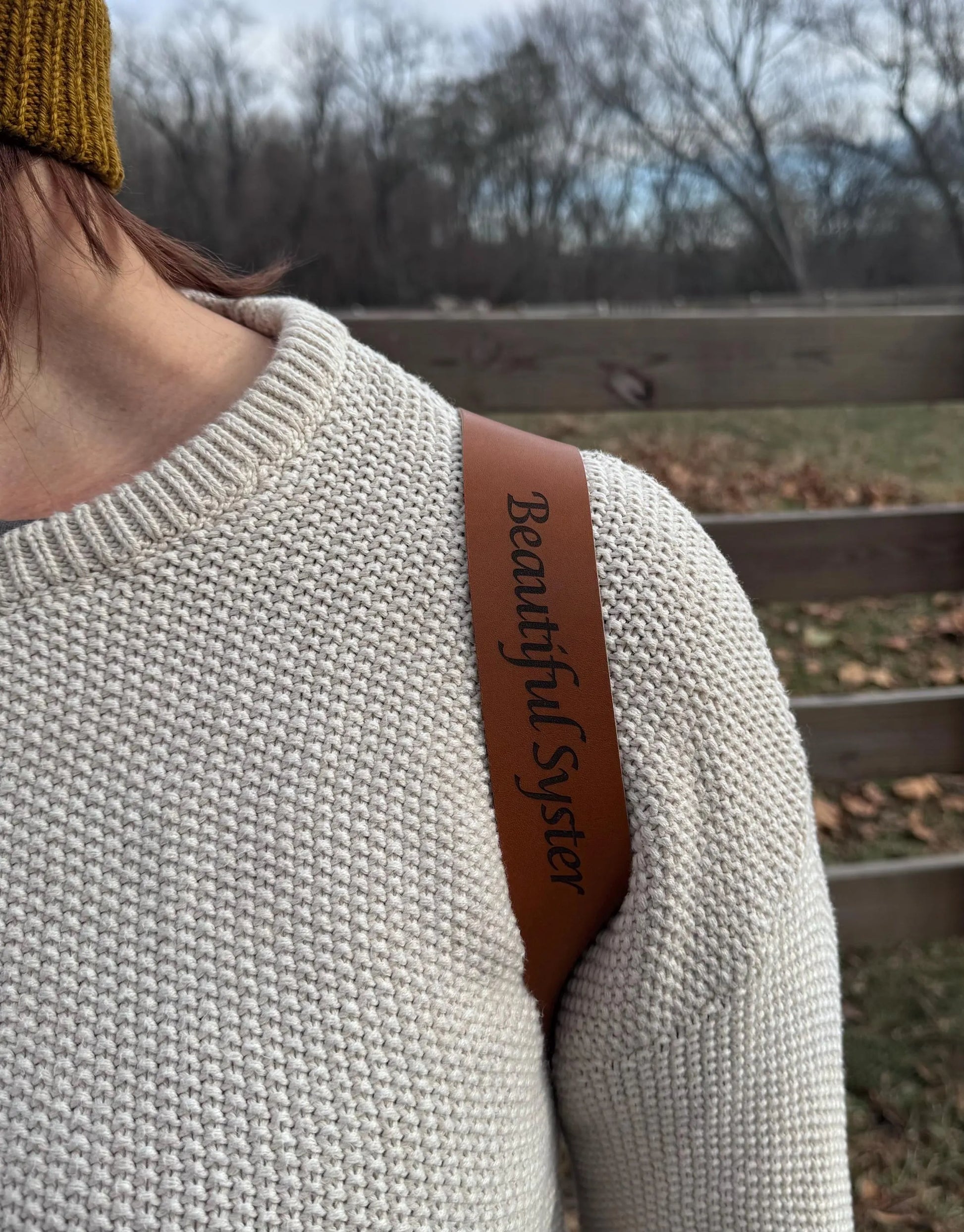 This backpack has three interior pockets, a D-ring, and a clasp closer on the inside. The straps are leather, and they are adjustable for length and comfort. This bag is made with sturdy canvas and is ready for all of your knitting adventures.