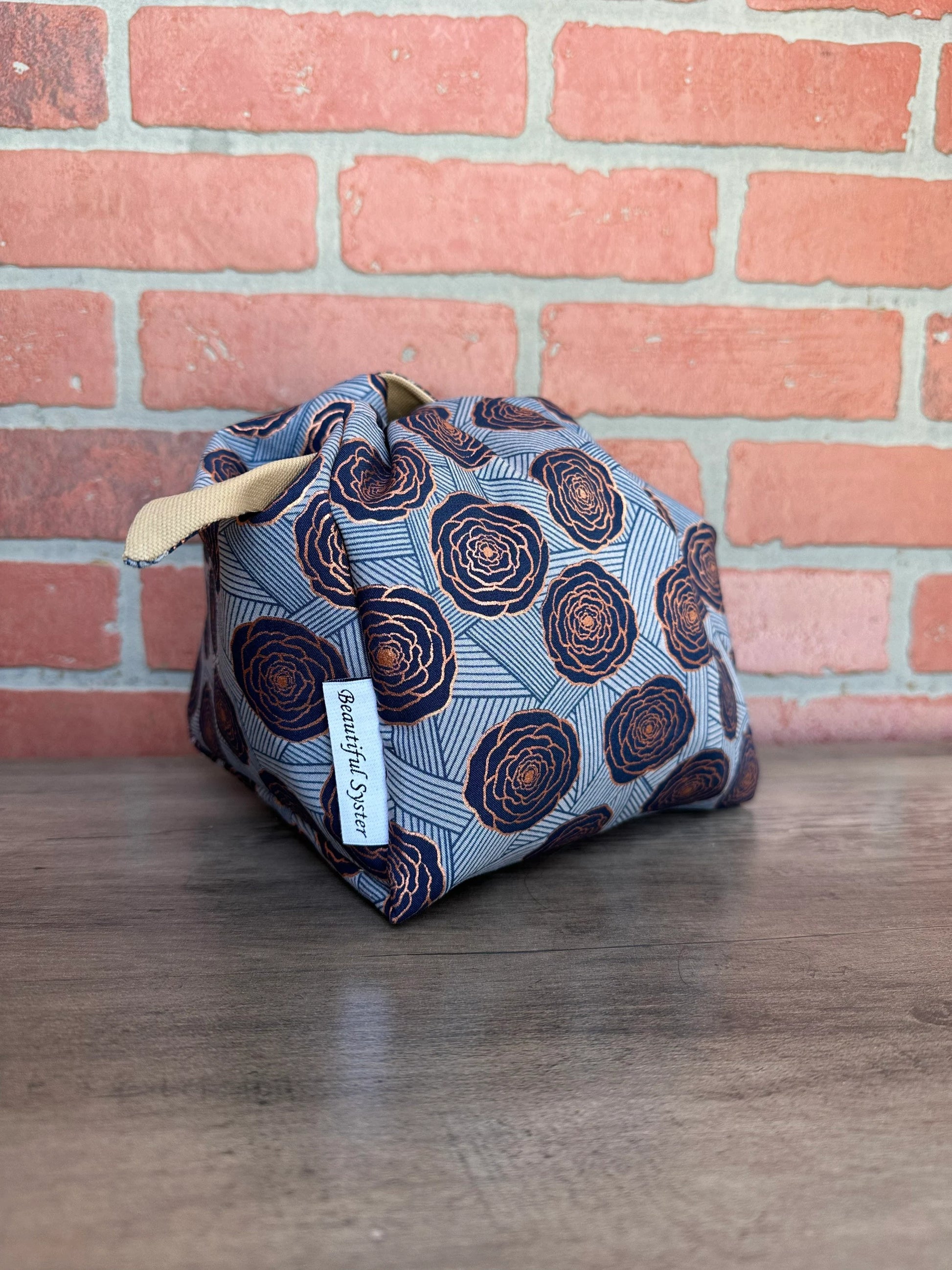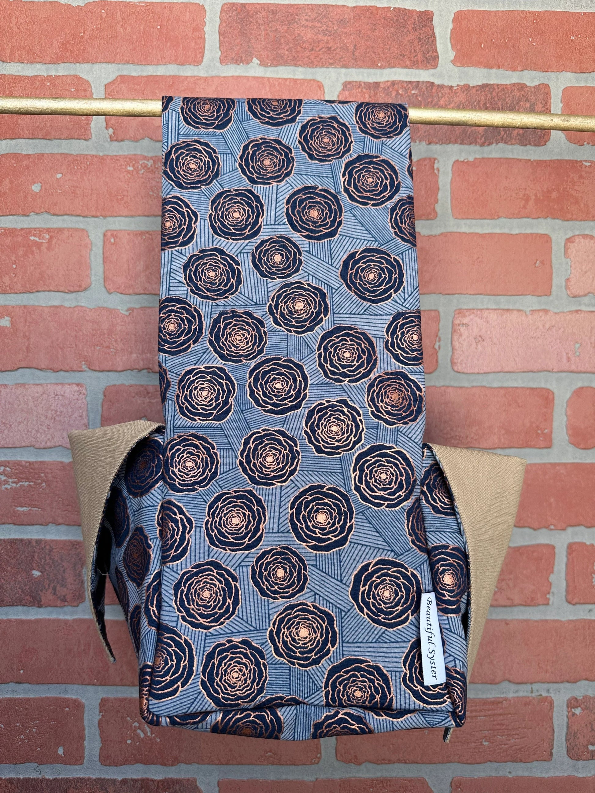 This is the perfect on the go project bag. You can carry your yarn in it and knit or crochet while walking or chasing your kids like I do. If you have to move fast just tie it up and all of your things stay safe inside.
