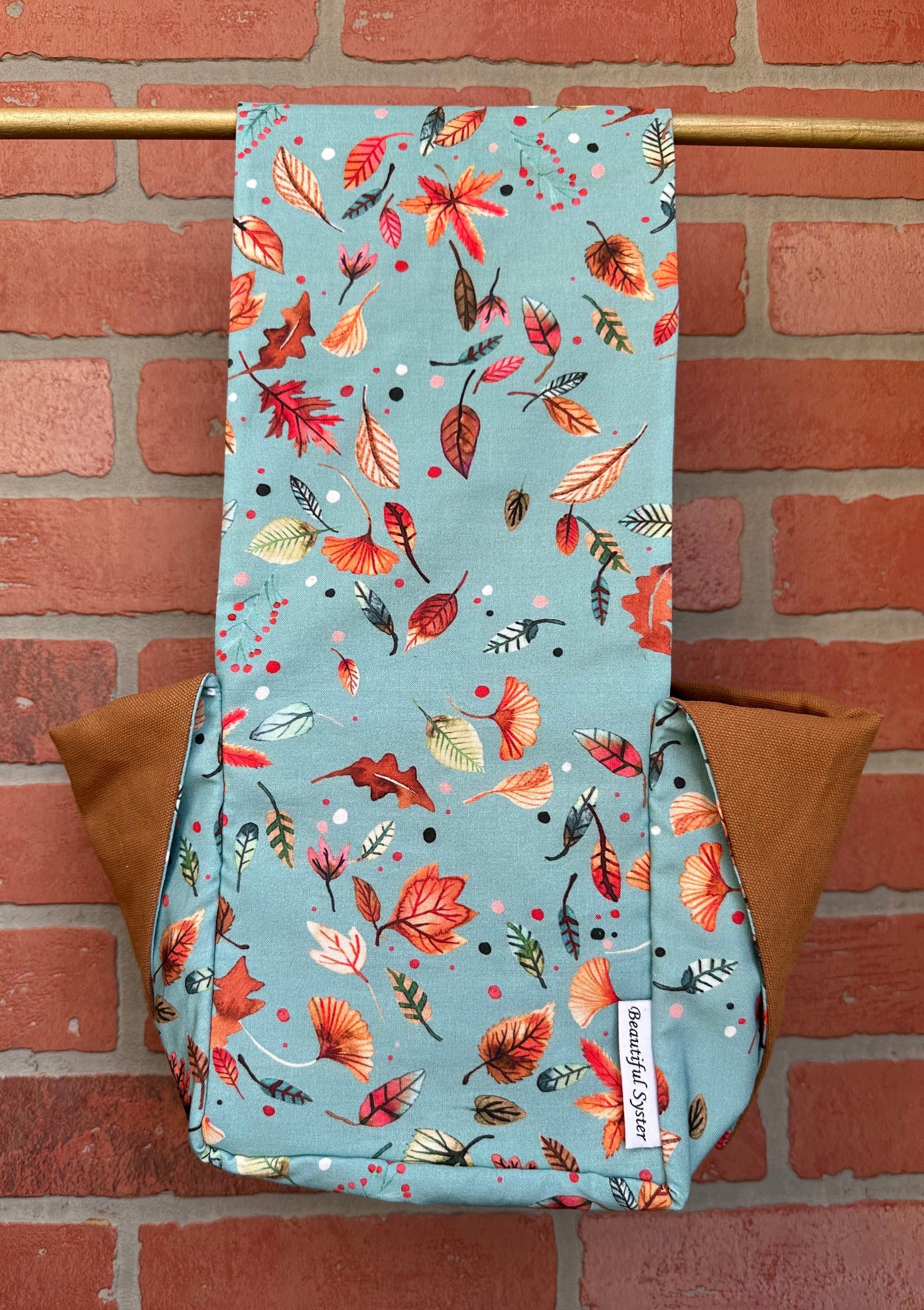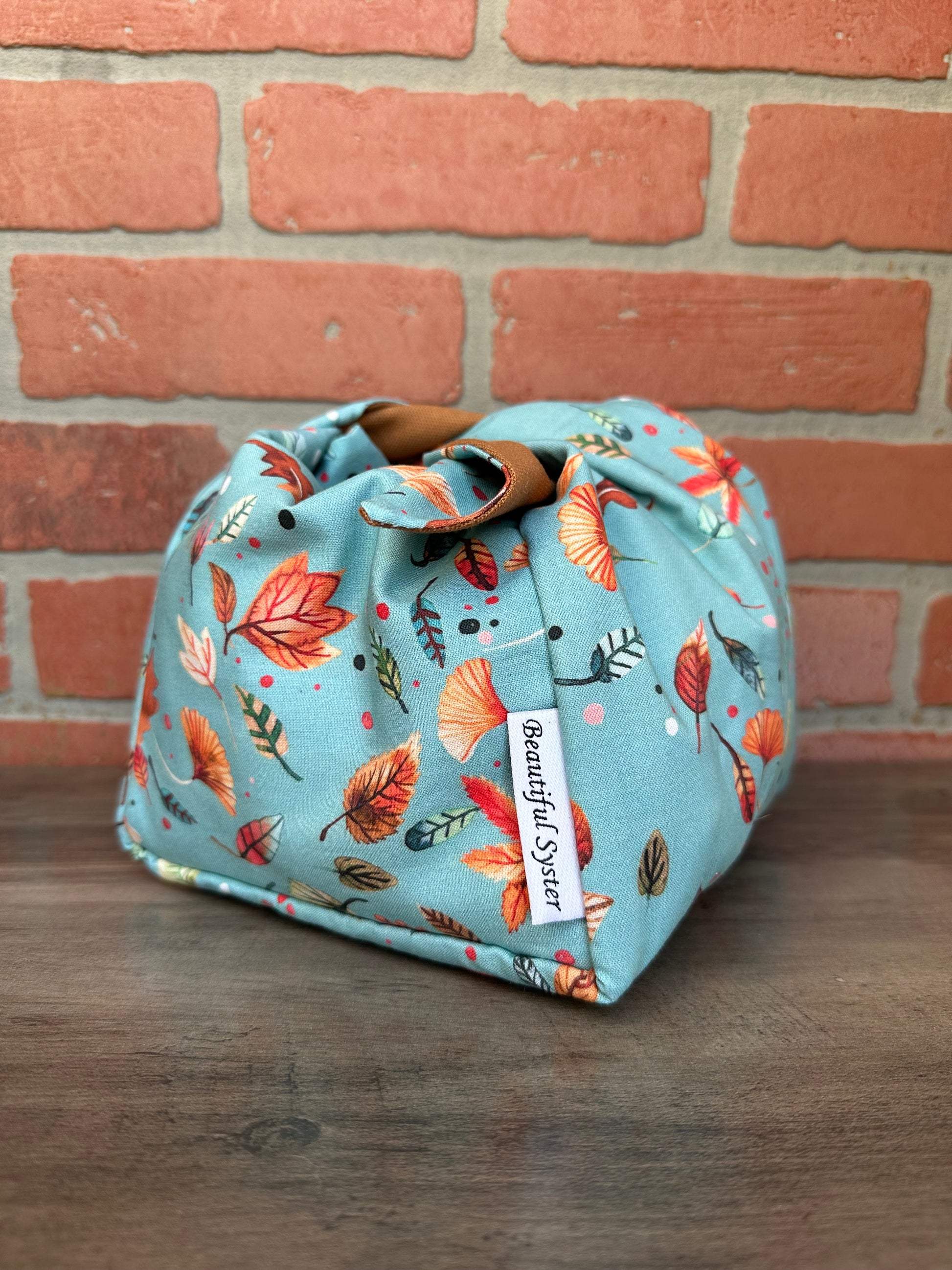 This is the perfect on the go project bag. You can carry your yarn in it and knit or crochet while walking or chasing your kids like I do. If you have to move fast just tie it up and all of your things stay safe inside.
