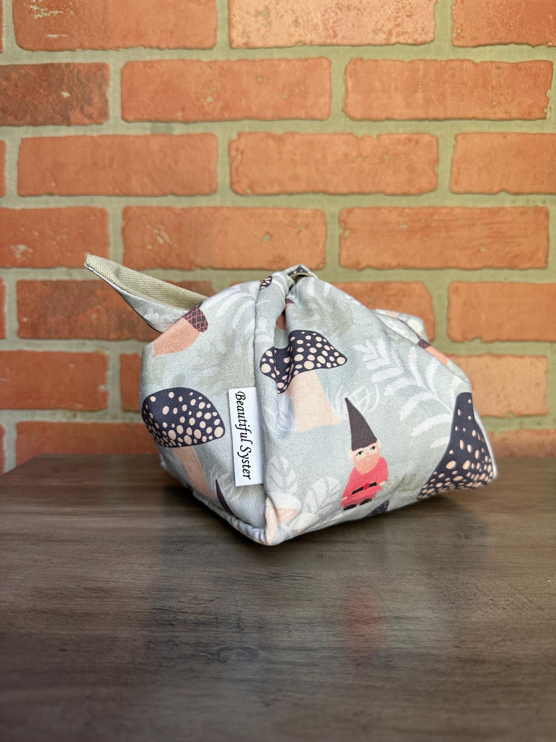 This is the perfect on the go project bag. You can carry your yarn in it and knit or crochet while walking or chasing your kids like I do. If you have to move fast just tie it up and all of your things stay safe inside.