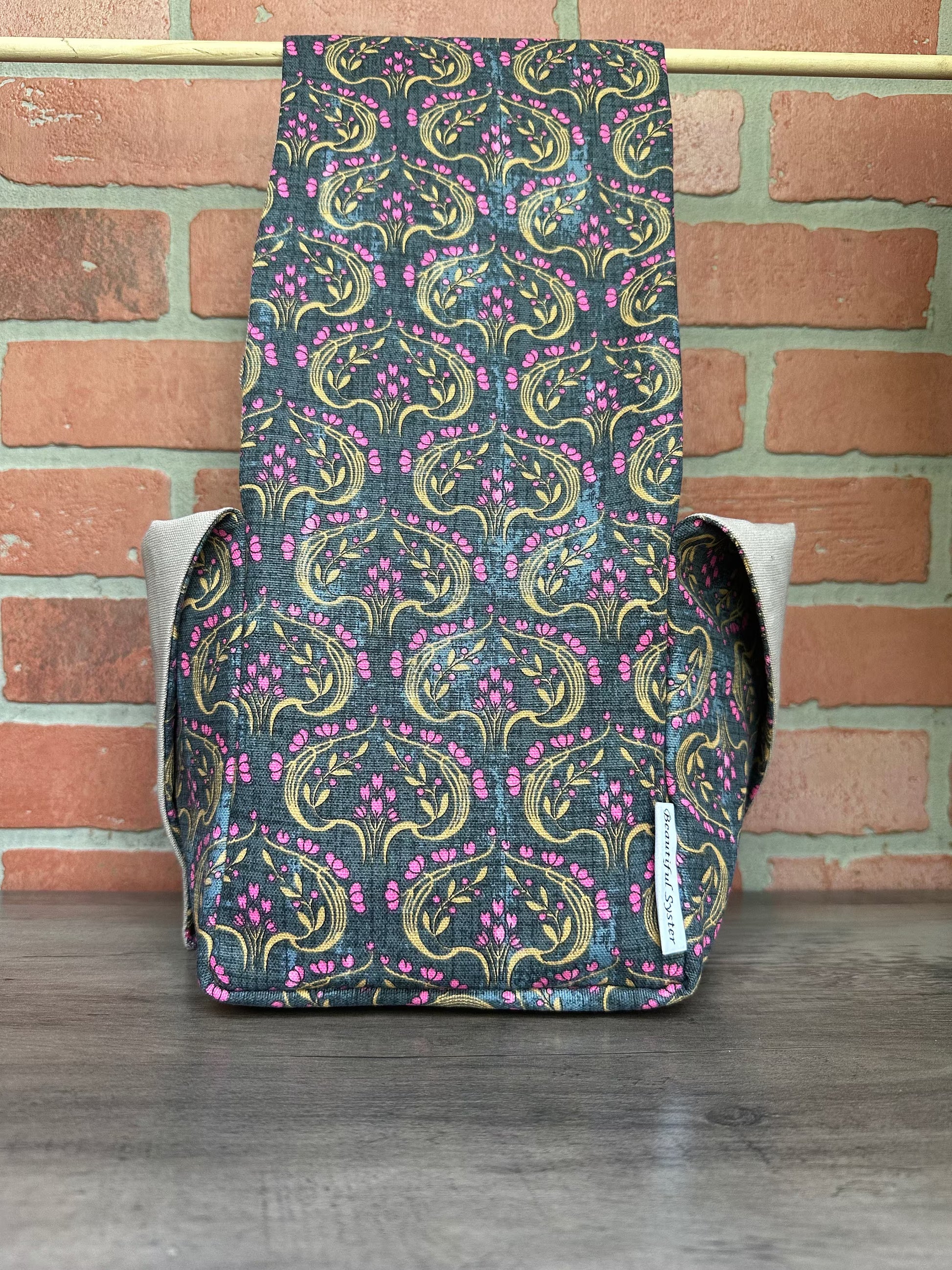 This is the perfect on the go project bag. You can carry your yarn in it and knit or crochet while walking or chasing your kids like I do. If you have to move fast just tie it up and all of your things stay safe inside.