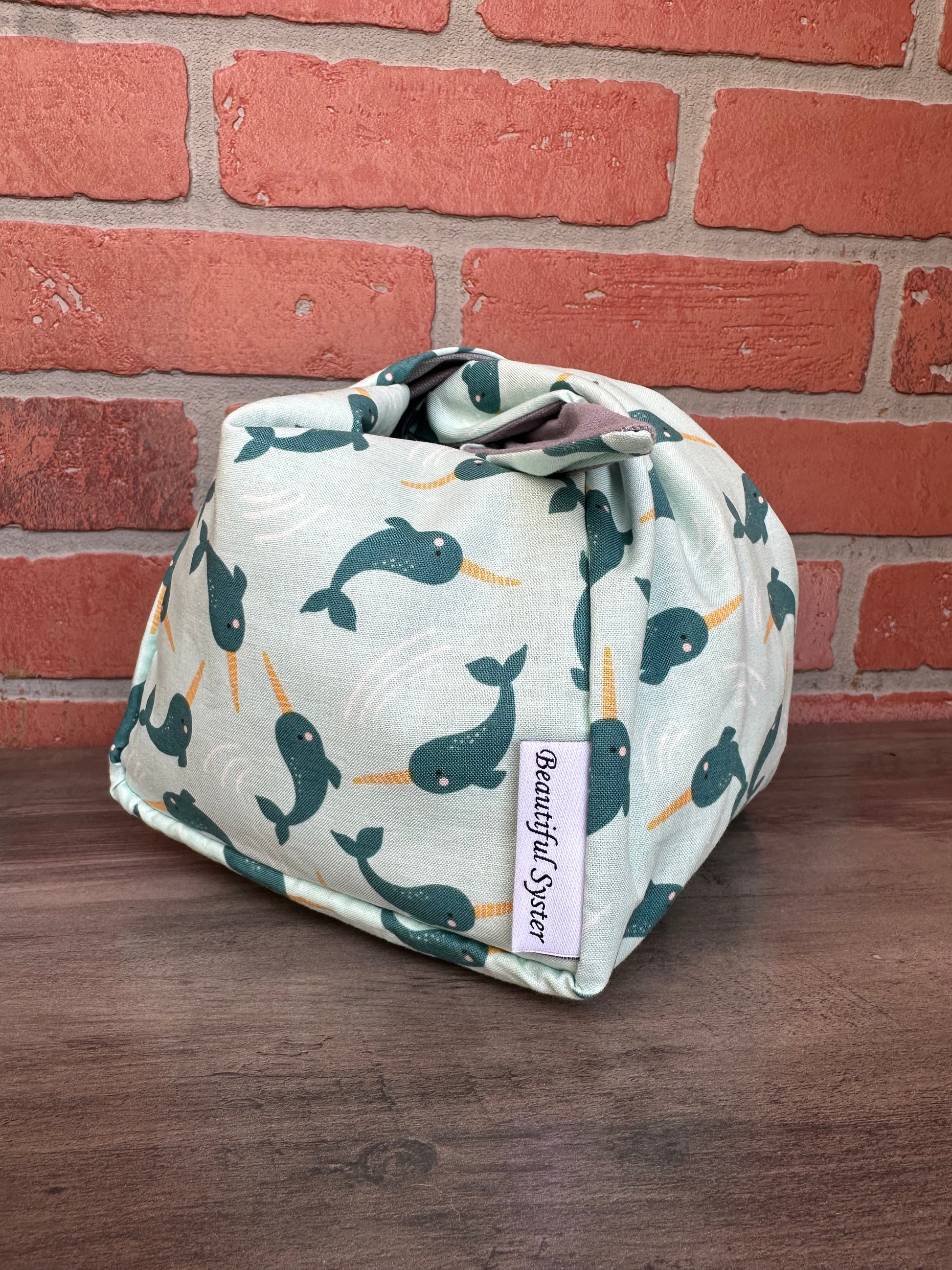 This is the perfect on the go project bag. You can carry your yarn in it and knit or crochet while walking or chasing your kids like I do. If you have to move fast just tie it up and all of your things stay safe inside.