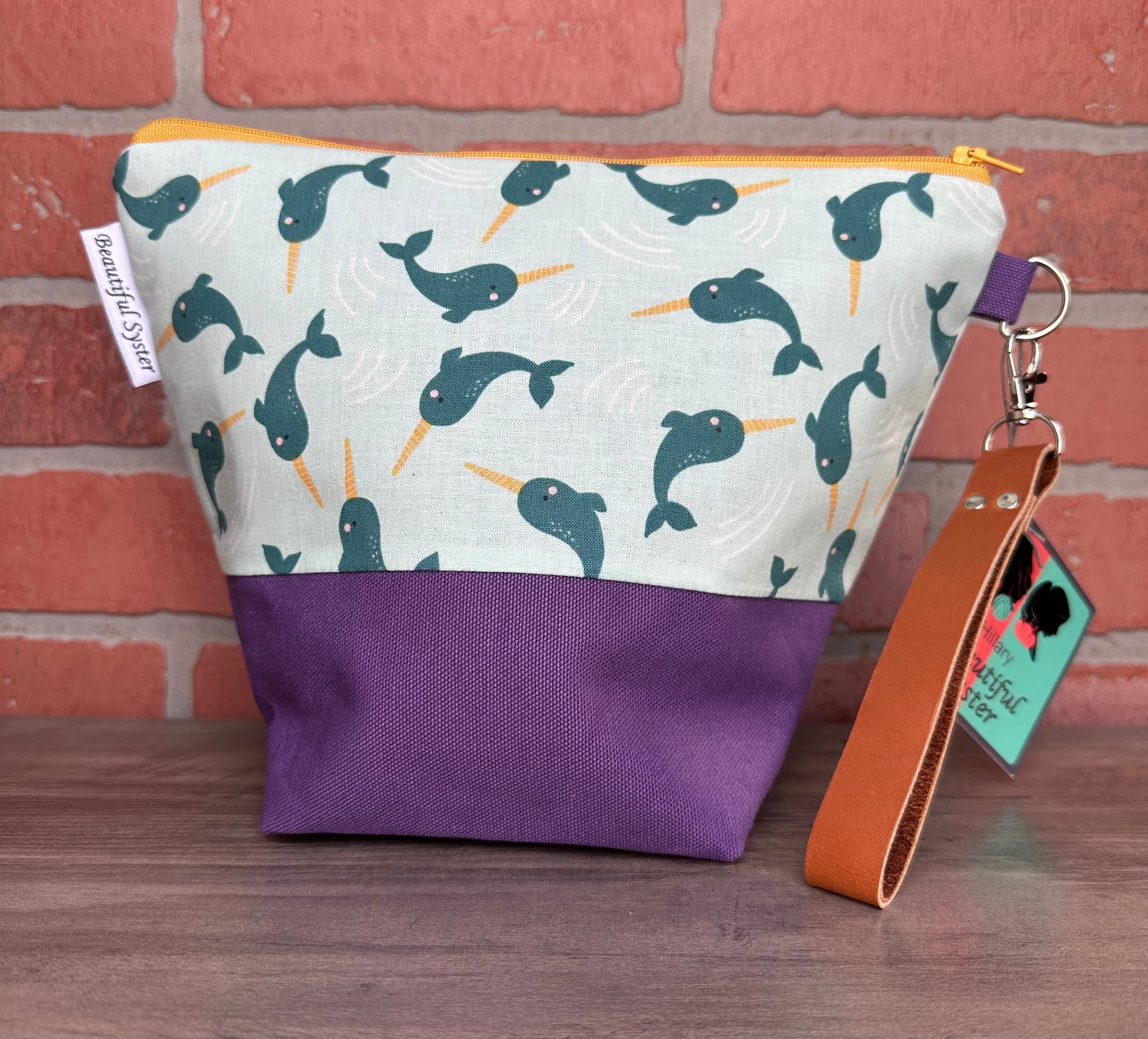 This beautifully bright bag has contrasting liner an bright zipper. May not be exact zipper in photo but will contrast fabric beautifully.