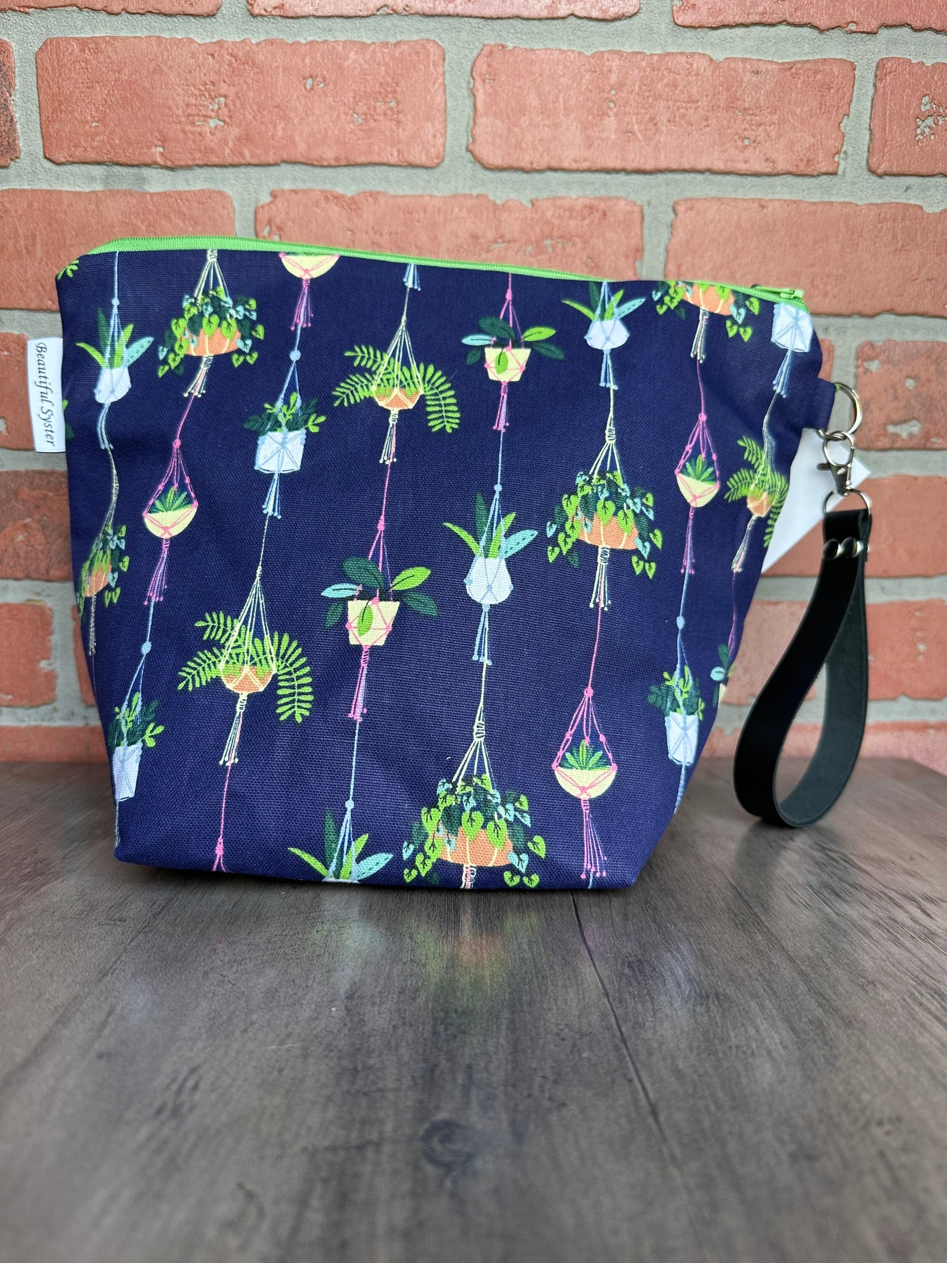 This is the bag for your sweater knitting. It fits your yarn, notions pouch, pattern, and anything else you may need for a project! It has three inside pockets and an attached leash. The leash is NOT for walking and knitting as this is a big bag.
