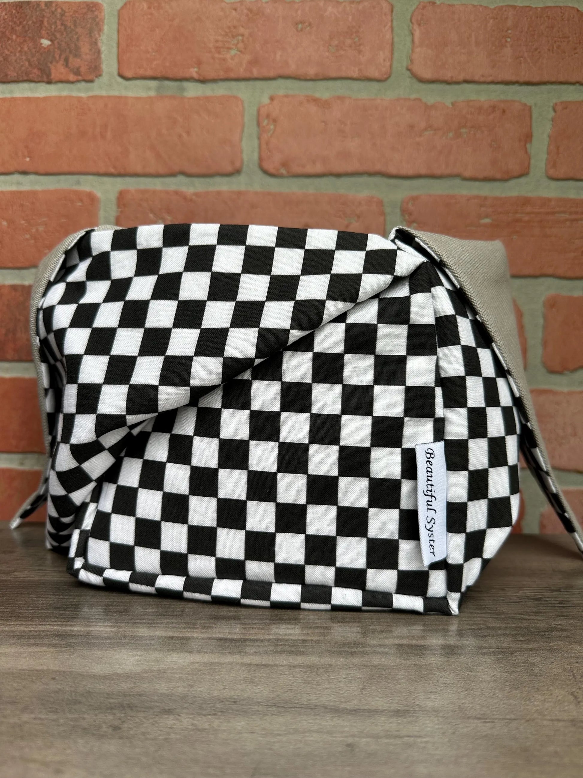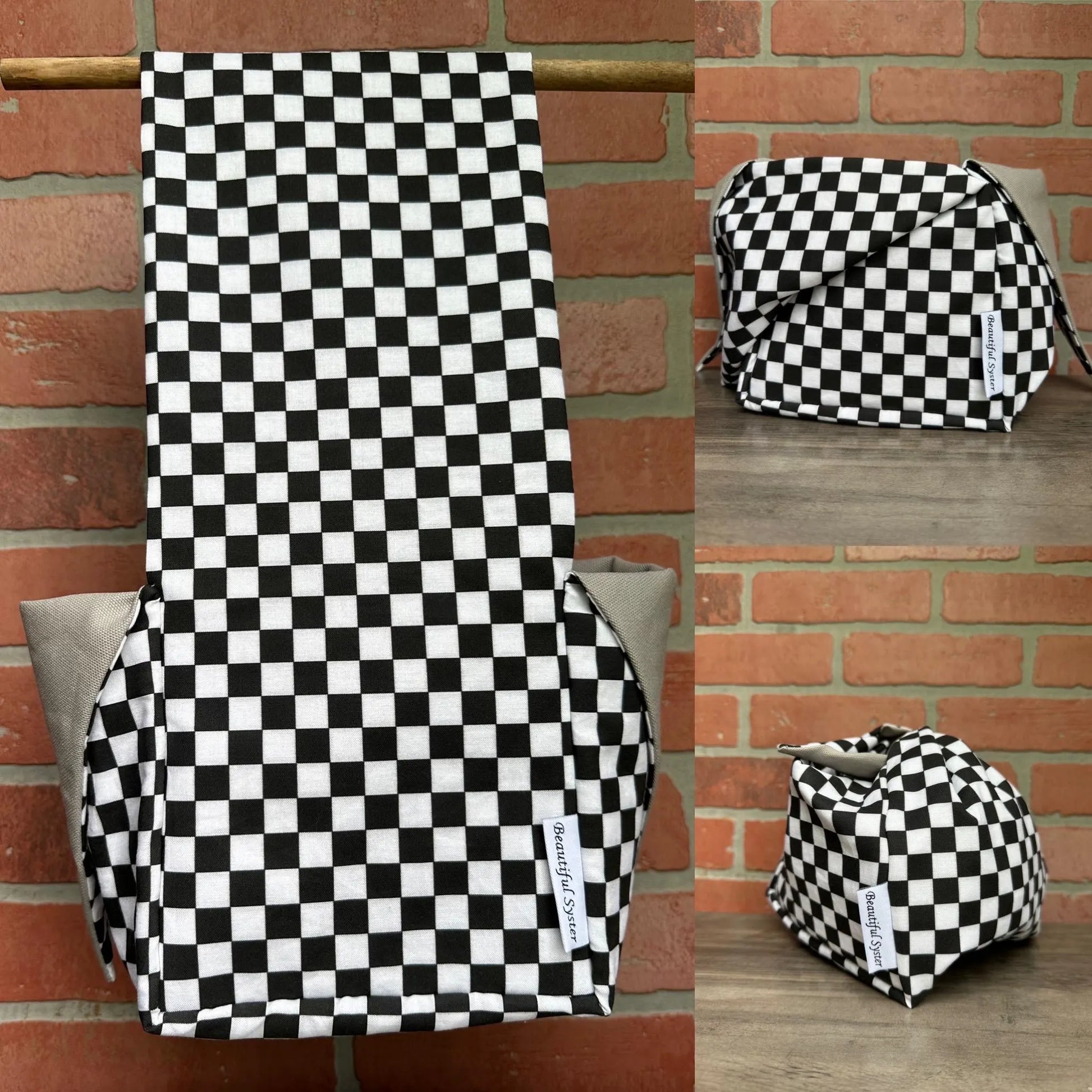 This is the perfect on the go project bag. You can carry your yarn in it and knit or crochet while walking or chasing your kids like I do. If you have to move fast just tie it up and all of your things stay safe inside.