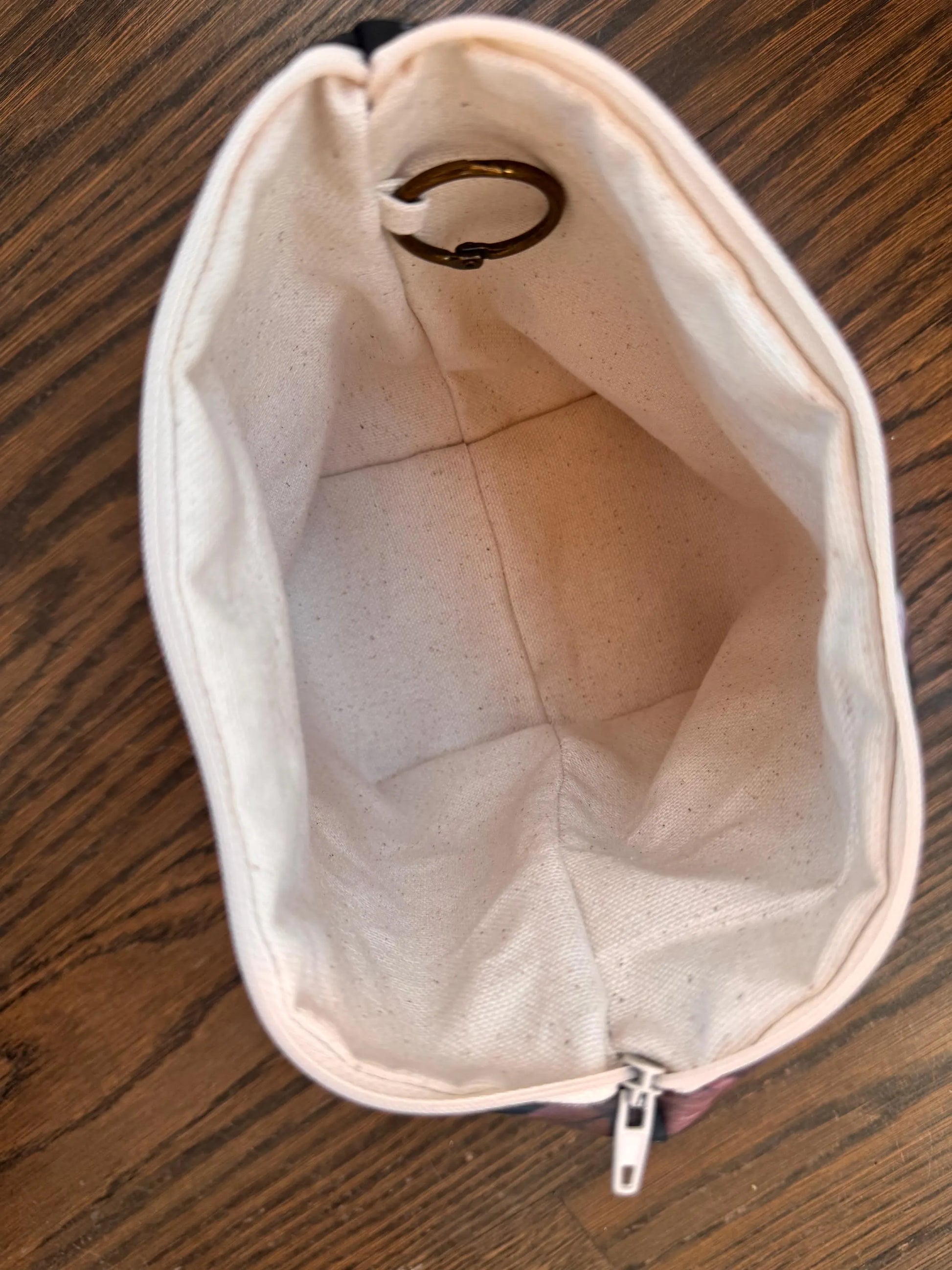 Perfect 1 skein project bag. Small enough to fit anywhere. A ring which opens on the inside to keep all your stitch markers safe!